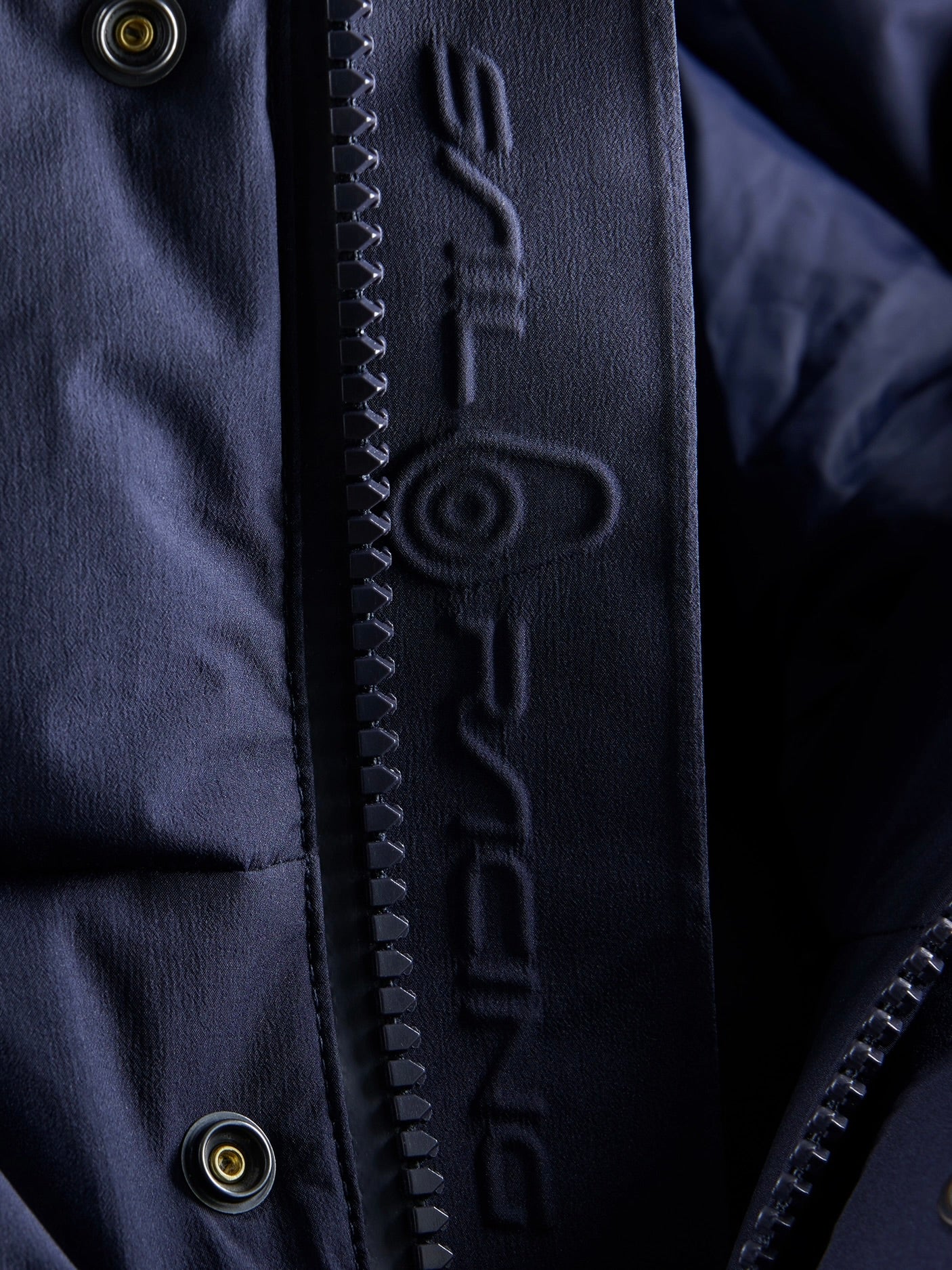 Jakken har en teknings overflate av nylon som gjør den vind og vann avstøtende.