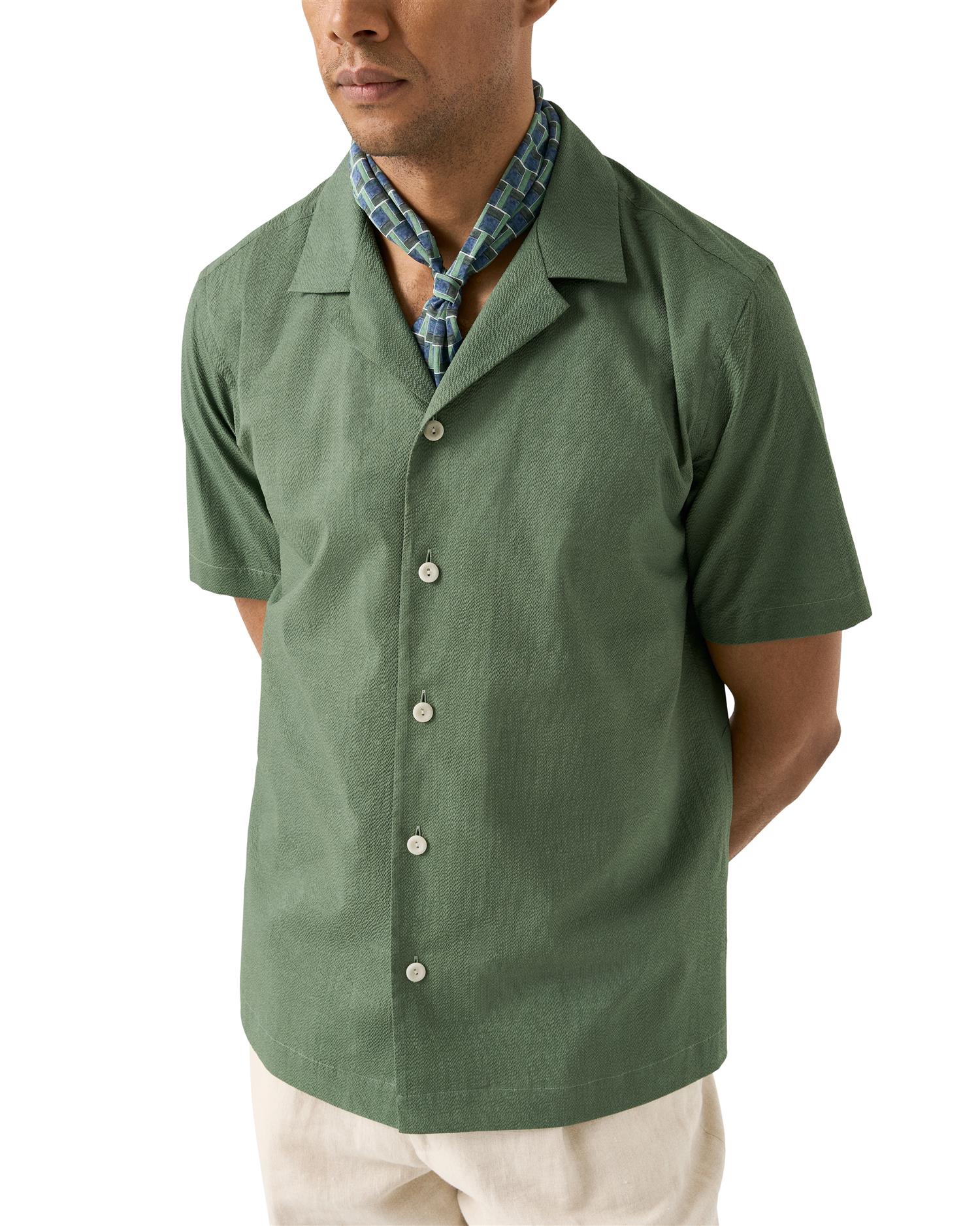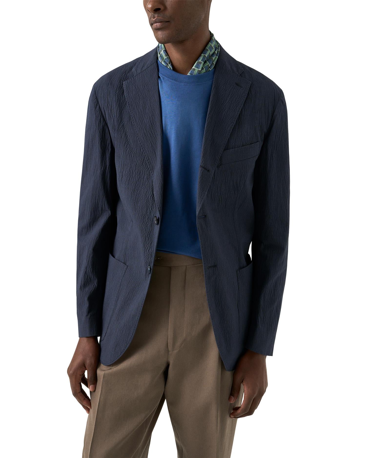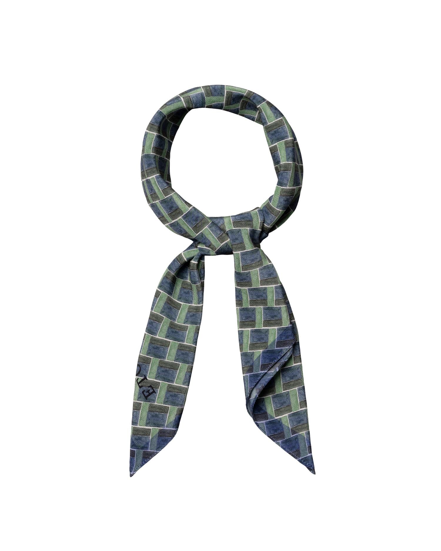 En silkebandana trykt med et geometrisk mønster, laget av lett 100 % silkekrepp for en myk hånd og elegant fall. Laget i Italia. 58 x 58 cm.