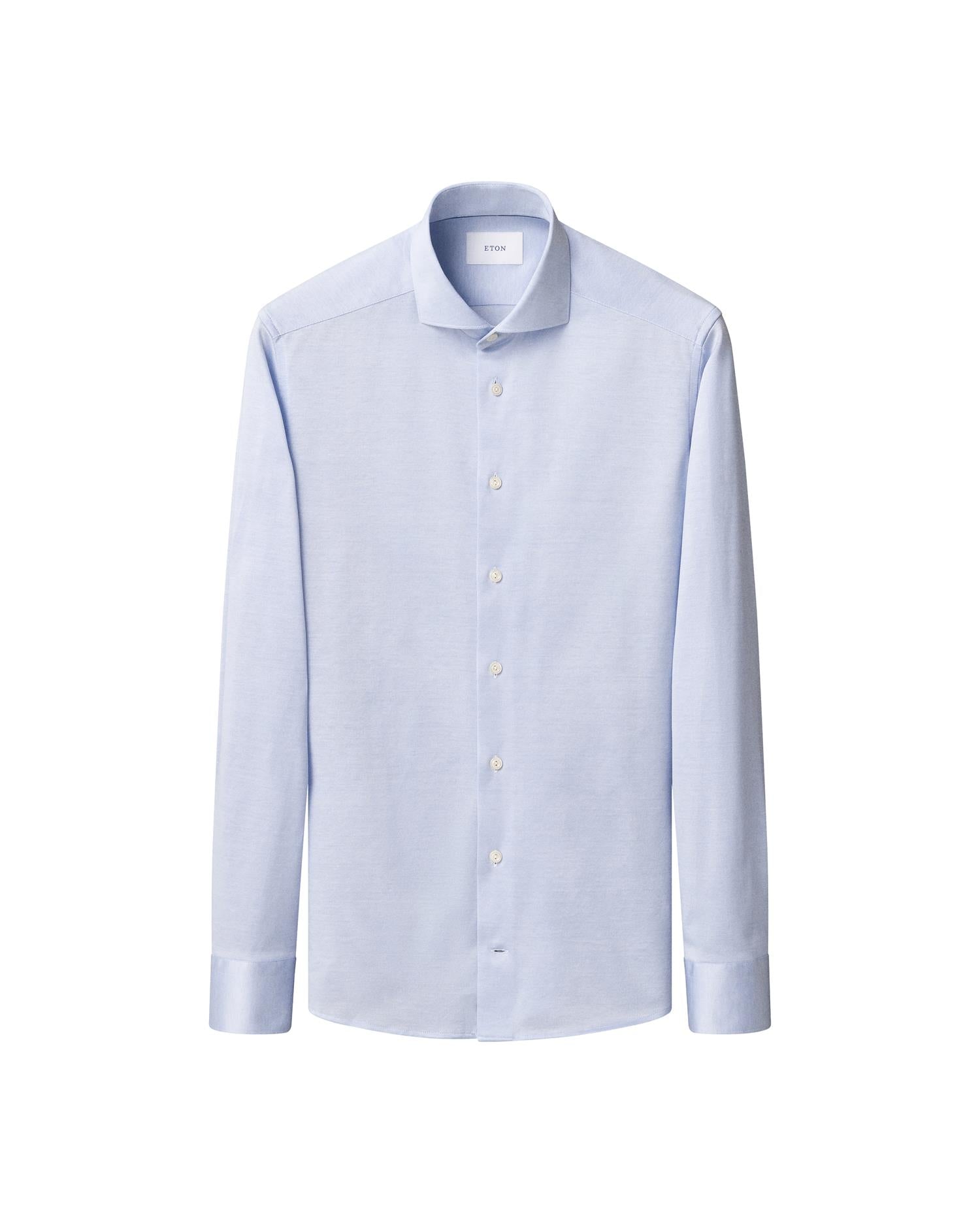 En skjorte laget av mercerisert Filo di Scozia-bomullsjersey, jacquardstrikket for en subtil tekstur og struktur. Naturlig pustende og myk mot huden, med et mykt fall og en mild glans. Forhøyet med ton-til-ton knapper – designet for moderne komfort med en polert finish.