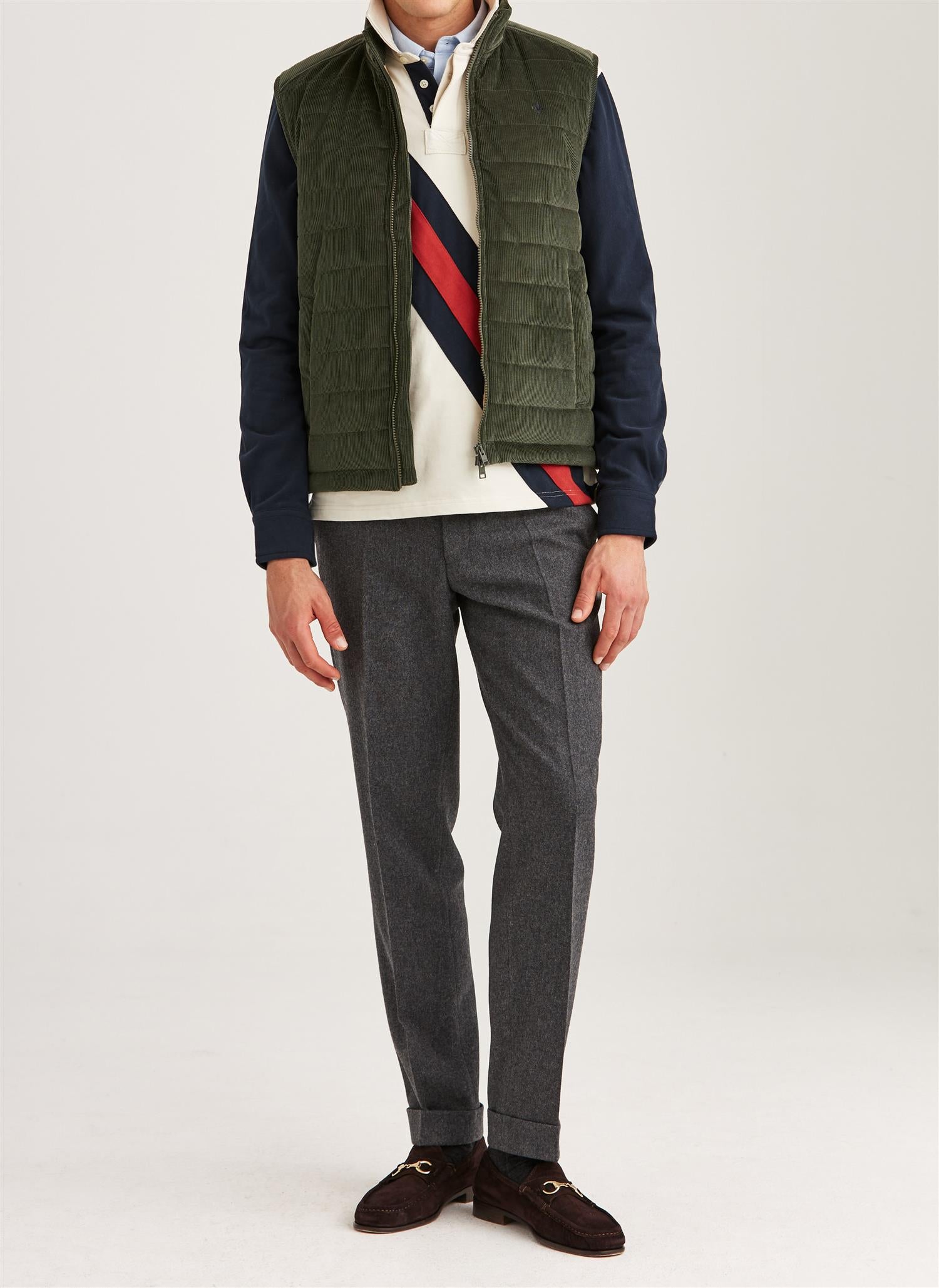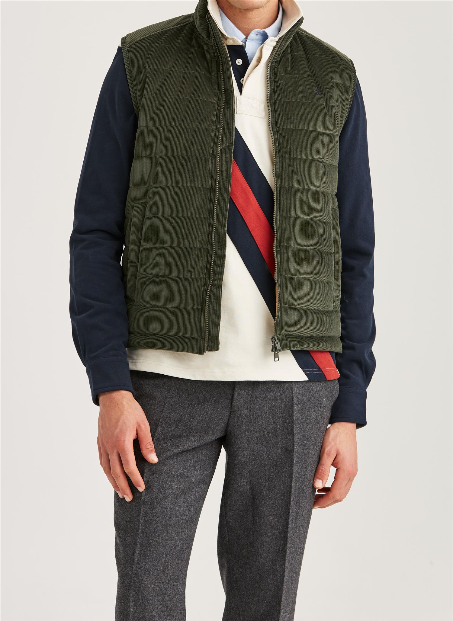 Klassisk preppy-stil, redefinert. Ted Quilted Cord Vest er laget av 100 % bomullscorduroy med en subtil, nesten glassaktig finish – og gir en raffinert glans som fanger lyset akkurat riktig.